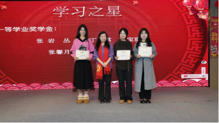 谭林、郭苗苗、刘席威、莫修良为荣获学习之星、科研之星、奉献之星荣誉称号的学生颁发证书,表彰她们在学习、科研、社会服务等方面取得的优异成绩和作出的突出贡献。